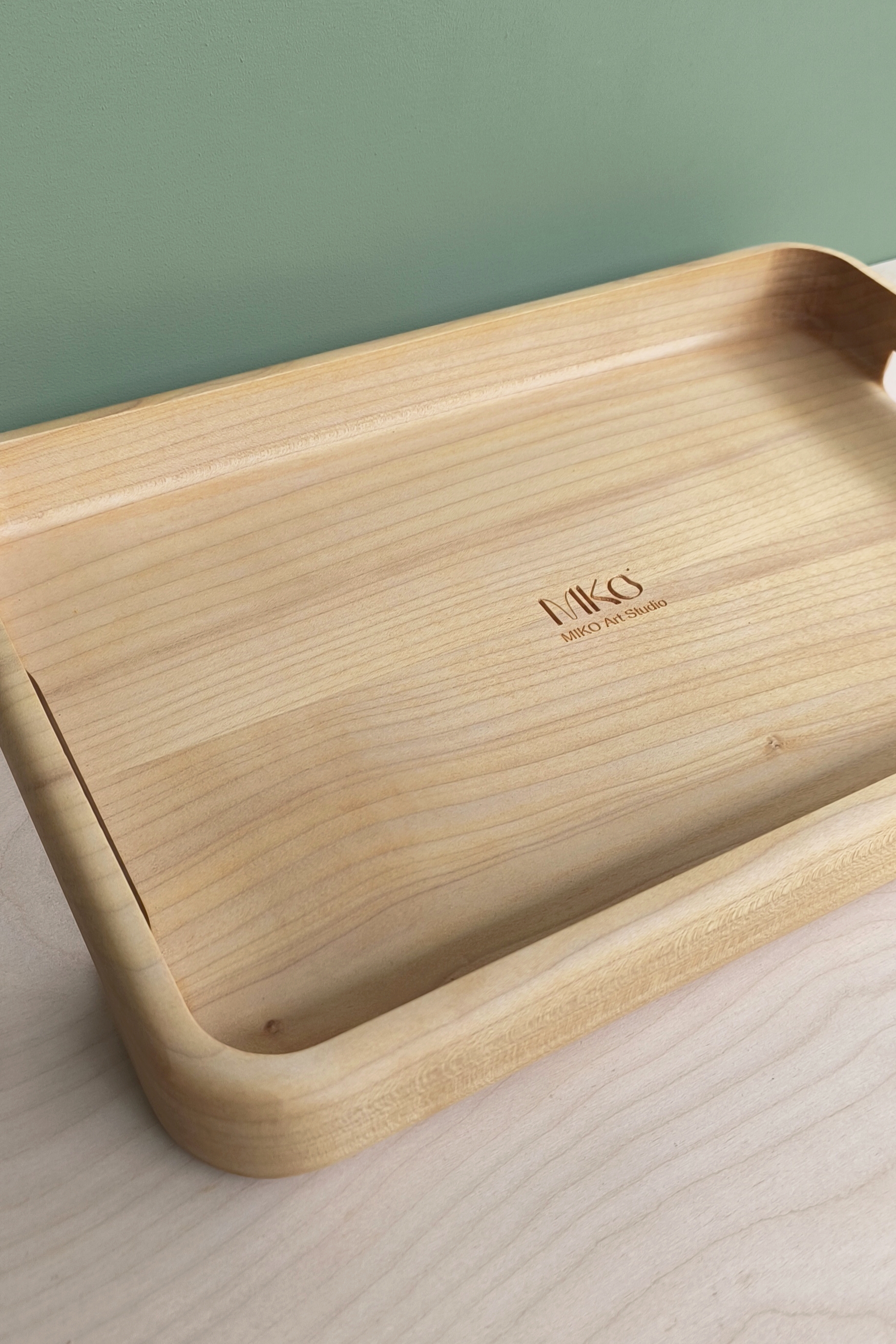 دو دسته در کناره های این سینی تراشیده شده که به دست گرفتن آن را بسیار راحت میکند